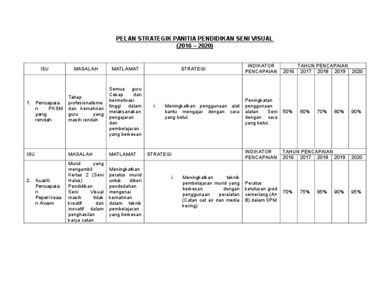 Pelan Strategik Pendidikan Seni Visual 2016 2020 Pdf