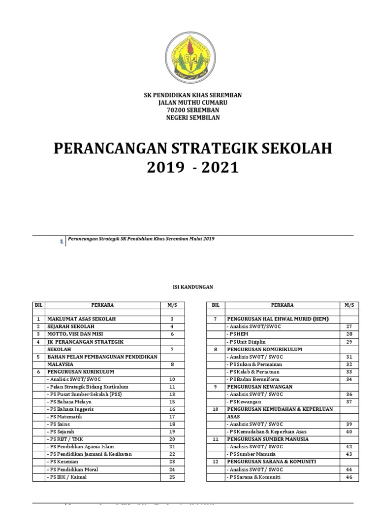 Plan Strategik Sekolah 2019 Pdf
